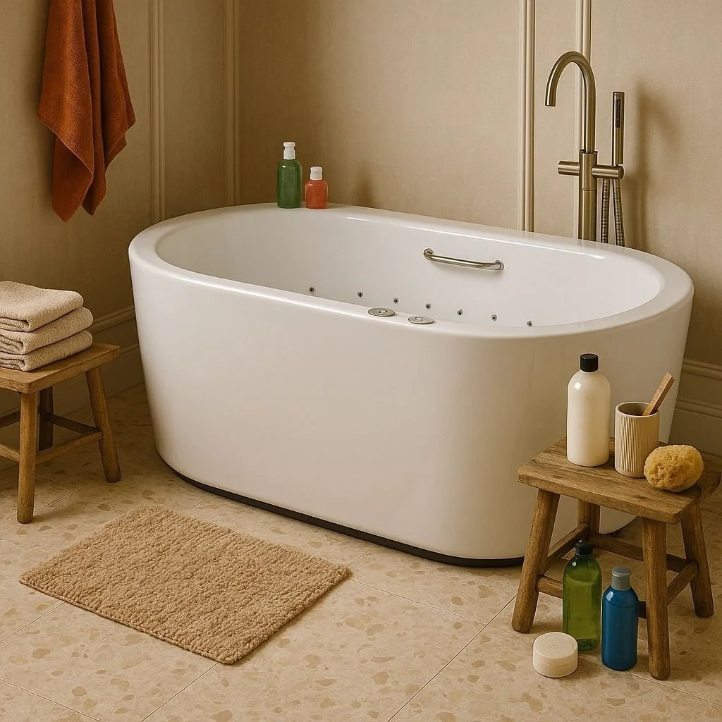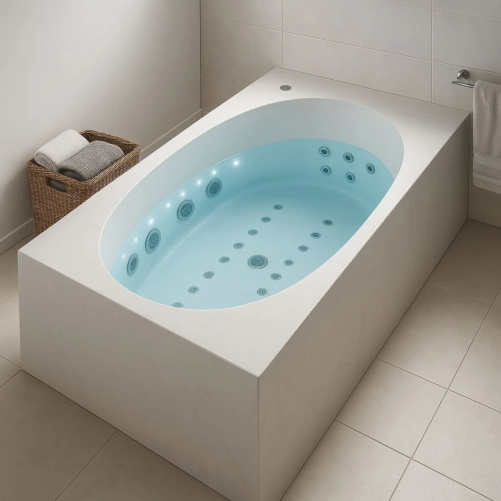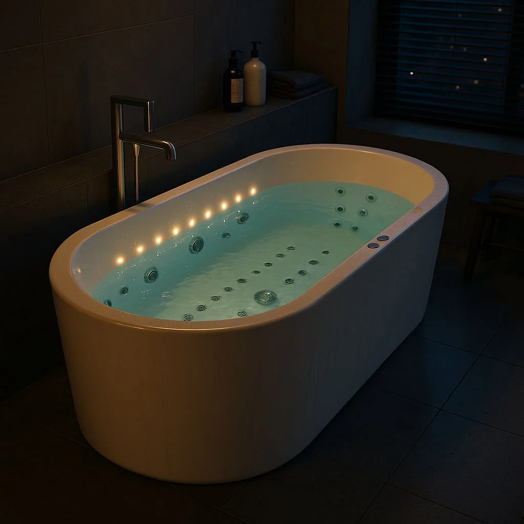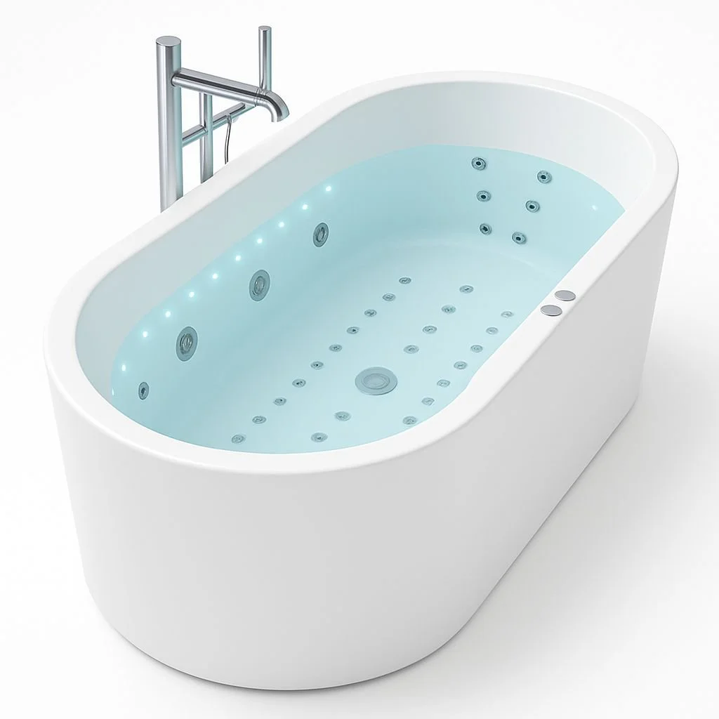 ET-LOTUS Spavision Well-Being 20 Jet Freestanding Oval Hydrotherapy & Chromotherapy (luxury bespoke – water & air combination) bathtub solution.
